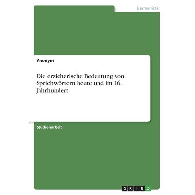 Die erzieherische Bedeutung von Sprichw繹rtern heute und im 16. Jahrhun