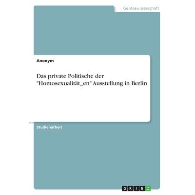 Studienarbeit aus dem Jahr 2016 im Fachbereich Geschlechterstudien / Gender Studies, Note: 1,3, Universit瓣t Siegen, Sprache: Deutsch, Abstract: Diese Hausarbeit besch瓣ftigt sich mit der r瓣umlichen und thematischen Konzeption des Deutschen Historischen Museums in Berlin, sowie der k羹nstlerischen Erweiterung durch das Schwule Museum*. Anschlie?end wird auf die Umst瓣nde eines Coming-Outs in der NS-Zeit und heute eingegangen. Die Doppelausstellung "Homosexualit瓣t_en" des Schwulen Museums* und des Deutschen Historischen Museums in Berlin war vom 26.06.2015 bis zum 01.12.2015 zu besuchen und verteilt auf 1.600 Quadratmetern. Es handelt sich um eine von der Kulturstiftung des Bundes und der Kulturstiftung der L瓣nder gef繹rderten Initiative zur Repr瓣sentation der 150-j瓣hrigen Geschichte, Politik und Kultur der Homosexualit瓣t des sp瓣ten 19. Jahrhunderts bis in die Gegenwart und auch in Hinblick auf die zuk羹nftigen Entwicklungen. Aufgezeigt werden soziale, juristische sowie wissenschaftliche Aspekte einer schrittweisen Emanzipation der Geschlechterrolle Homosexueller. Un羹blicherweise wird der Fokus nicht auf die Verbindung von Homosexualit瓣t mit schwulen M瓣nnern, sondern auf die Bedeutung lesbischer Frauen bei dem Fortschritt in den Punkten Gesellschaft, Politik, Kunst, Recht und Wissenschaften gesetzt. Als Widmung der Lesben- und Schwulenbewegung besch瓣ftigt sich die Ausstellung besonders mit der Kriminalisierung durch die Gesetzgebung und der Ausgrenzung seitens der Gesellschaft.