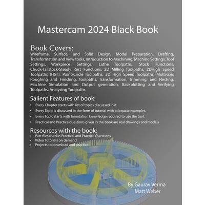 The Mastercam 2024 Black Book, the new, updated edition! is the 4th edition of our series on Mastercam. The book is authored to help professionals as well as learners in creating some of the most complex NC toolpaths. The book follows a step-by-step methodology. In this book, we have tried to give real-world examples with real challenges in designing. We have tried to reduce the gap between university use of Mastercam and industrial use of Mastercam. The book covers almost all the information required by a learner to master Mastercam. The book starts with basics of machining and ends at advanced topics like Multiaxis Machining Toolpaths. This book covers Mastercam Designing tools, Milling Machine Tools and Lathe Machine tools. Some of the salient features of this book are: