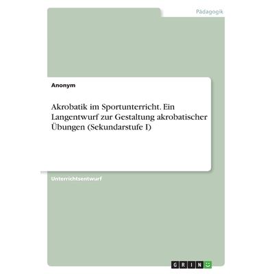 Unterrichtsentwurf aus dem Jahr 2014 im Fachbereich Didaktik - Sport, Sportp瓣dagogik, Note: 2,5, Universit瓣t Rostock, Sprache: Deutsch, Abstract: In dieser Ausarbeitung der Unterrichtseinheit geht es um das Thema der Gestaltung akrobatischer ?bungen. Bei der Akrobatik lernen die Kinder ihre k繹rperlichen Grenzen kennen und erfahren Aspekte des sozialen Miteinanders. Akrobatik kann folglich das Zusammenarbeiten sowie das individuelle K繹nnen fordern und f繹rdern. Bereits im Grundschulrahmenplan Mecklenburg-Vorpommerns im Fach Sport wird auf das Pr瓣sentieren von Bewegungen in Partner- oder Gruppenarbeit eingegangen. Besonders wichtig sind bei der Umsetzung von akrobatischen ?bungen die eigene K繹rpererfahrung, das Treffen von eigenen Entscheidungen sowie das Erfahren von Gleichgewicht und Schwerkraft. Au?erdem lernen die Sch羹ler miteinander in einer Gruppe zu interagieren, Kunstst羹cke zu gestalten und umzusetzen. In der Arbeit wird n瓣her auf die Sekundarstufe I eingegangen.