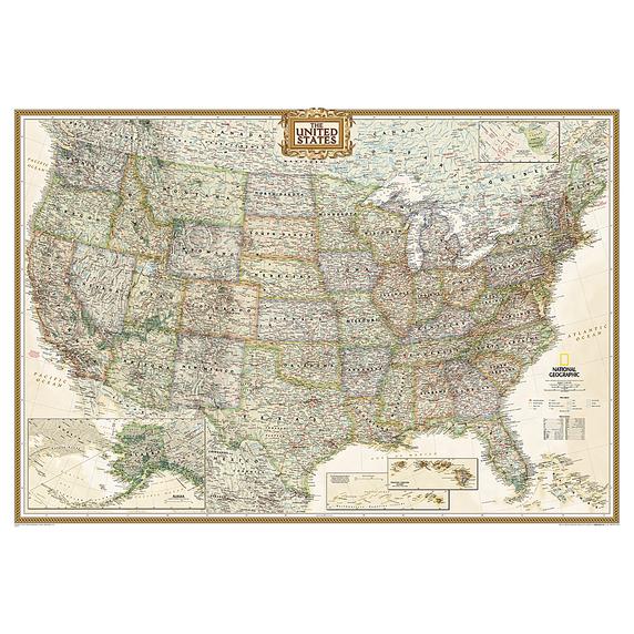 National Geographic: United States Executive Wall Map (43.5 X 30.5 Inches)