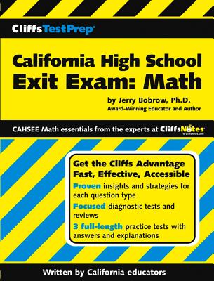 CliffsTestPrep California High School Exit Exam: Mathematics can help you pass this critical competency exam necessary for high school graduation. More and more high schools are requiring exit exams in order to ensure that all students graduate with a thorough knowledge of state standards in mathematics. This easy-to-use CAHSEE Mathematics Preparation Guide gives you that extra edge withThree full-length practice testsSamples and strategies for all question typesAnalysis of each exam areaAnswers to common questions about the testGlossaries for arithmetic, algebra, geometry, and units of measure