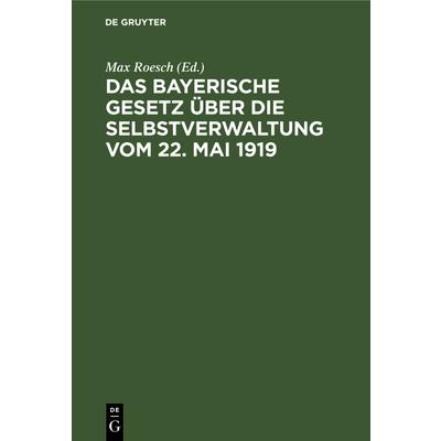 Das Bayerische Gesetz ?ber Die Selbstverwaltung Vom 22. Mai 1919