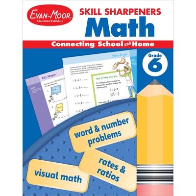 Skill Sharpeners: Math, grade 6 provides practice for the following skills: use positive and negative numbers calculate and use rates and ratios solve equations with exponents and variables add, subtract, multiply, and divide fractions and mixed numbers add, subtract, multiply, and divide decimals calculate with percentages graph points on a coordinate grid calculate volume calculate surface area represent three-dimensional figures with nets read, create, and interpret bar, circle, and line graphs, and histograms find measures of center