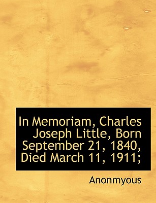 In Memoriam, Charles Joseph Little, Born September 21, 1840, Died March 11, 1911;