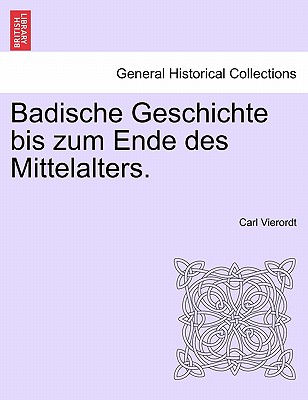 Title: Badische Geschichte bis zum Ende des Mittelalters.Publisher: British Library, Historical Print EditionsThe British Library is the national library of the United Kingdom. It is one of the world's largest research libraries holding over 150 million items in all known languages and formats: books, journals, newspapers, sound recordings, patents, maps, stamps, prints and much more. Its collections include around 14 million books, along with substantial additional collections of manuscripts and historical items dating back as far as 300 BC.The GENERAL HISTORICAL collection includes books from the British Library digitised by Microsoft. This varied collection includes material that gives readers a 19th century view of the world. Topics include health, education, economics, agriculture, environment, technology, culture, politics, labour and industry, mining, penal policy, and social order. ++++The below data was compiled from various identification fields in the bibliographic record of this title. This data is provided as an additional tool in helping to insure edition identification: ++++ British Library Vierordt, Carl; 1865. 8 . 9335.bbb.28."