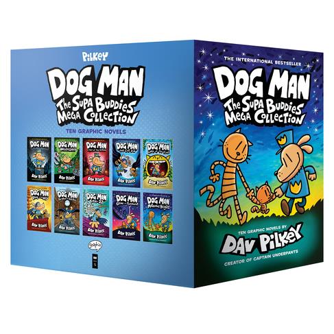 Dog Man is the crime-biting canine who is part dog, part man, and ALL HERO! This supa deluxe boxed set includes ten Dog Man books: Dog Man, Dog Man Unleashed, Dog Man: A Tale of Two Kitties, Dog Man and Cat Kid, Dog Man: Lord of the Fleas, Dog Man: Brawl of the Wild, Dog Man: For Whom the Ball Rolls, Dog Man: Fetch-22, Dog Man: Grime and Punishment, and Dog Man: Mothering Heights.
