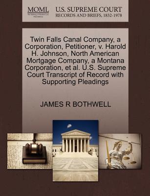 The Making of Modern Law: U.S. Supreme Court Records and Briefs, 1832-1978 contains the world's most comprehensive collection of records and briefs brought before the nation's highest court by leading legal practitioners - many who later became judges and associates of the court. It includes transcripts, applications for review, motions, petitions, supplements and other official papers of the most-studied and talked-about cases, including many that resulted in landmark decisions. This collection serves the needs of students and researchers in American legal history, politics, society and government, as well as practicing attorneys. This book contains copies of all known US Supreme Court filings related to this case including any transcripts of record, briefs, petitions, motions, jurisdictional statements, and memorandum filed. This book does not contain the Court's opinion. The below data was compiled from various identification fields in the bibliographic record of this title. This data is provided as an additional tool in helping ensure edition identification: Twin Falls Canal Company, a Corporation, Petitioner, v. Harold H. Johnson, North American Mortgage Company, a Montana Corporation, et al.