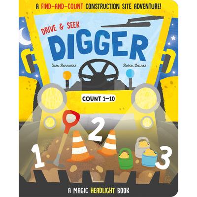 Buckle up and get ready to go on a construction site adventure with this fun Magic Headlight book. With five clever card steering wheels, learning to count 1-10 is made fun as you take the wheel and 'drive' around five exciting scenes to find and count hidden construction machines and objects.
