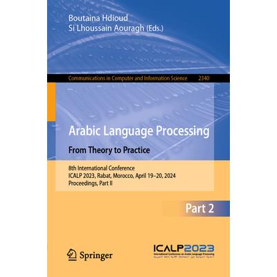 This two-volume set, CCIS 2339 and CCIS 2340, constitutes the refereed proceedings of the 8th International Conference on Arabic Language Processing, ICALP 2023, held in Rabat, Morocco, during April 19-20, 2024.