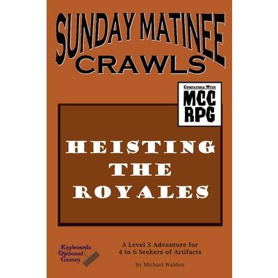 Hanging out in a small pub leads to great adventures. Sometimes. While the party of seekers are listening to a tall story about a traveler that is missing an arm, the storyteller talks about how it was stolen. His artifact arm was ripped from his body! Taken by the pirates and rogues he calls The Royales. The seekers clearly appear to be experienced and the storyteller takes notice. He asks that they go retrieve his arm back from the "dirty pirates living in the waste dunes." But I would find a way in that is quiet he advises. Will the party travel into the turf of The Royales? Will they heed his warning and sneak into the base? The seekers have an opportunity to go on the heist of a lifetime and steal back the arm stolen once before. Sneak in? Parachute in? It is time for the seekers to become skilled burglars. Sunday Matinee Crawls: Heisting The Royales is an adventure compatible with the Mutant Crawl Classics Role Playing Game. This module is designed for 4 to 6 level 3 seekers.