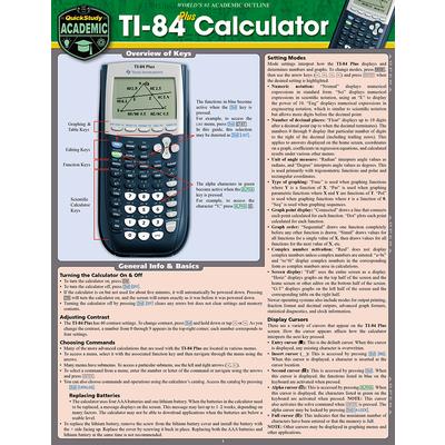 You've just purchased a TI-84 Plus calculator to assist in performing different types of mathematical equations--now, how can you get the most out of it? You'll find the answer to this question with our comprehensive, 6-page guide that shows in great detail what exactly the TI-84 Plus can do. Function key and mode descriptions, as well as problem-solving examples, are included within a color-coded format for easy reference.