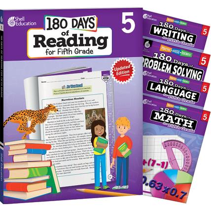 180 Days(TM) Fifth Grade Practice 5-Book Set provides 180 days of daily practice activities to build students' reading, writing, mathematics, language, grammar, and problem-solving skills. Teachers and parents can help students gain regular practice with these quick, diagnostic-based activities that are easy to prepare and implement as part of a classroom routine, as intervention, or as homework. Aligned with state and national standards, these comprehensive workbooks will prepare students for college and career. This 5-Book Set includes: 180 Days(TM) Math for Fifth Grade180 Days(TM) Reading for Fifth Grade180 Days(TM) Language for Fifth Grade180 Days(TM) Writing for Fifth Grade180 Days(TM) Problem Solving for Fifth Grade