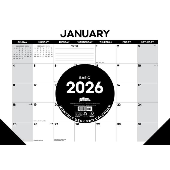 Basic 2026 17 X 12 Small Monthly Deskpad