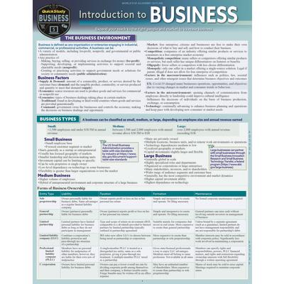 Ultimate quick reference for the essentials of business succinctly written by author and professor Dr. Kyle Allison to support students taking an introduction to business college course. For professionals without an academic background in business this guide offers a bird's-eye view of the structure as a whole broken down departmentally, with the role each area plays, defining jargon, plus key processes and strategy. This 6-page laminated guide packs in the answers you need with color coded sections in an outline format designed for finding facts fast. Boost grades for class or increase your business knowledge to help your career goals, either way this value cannot be missed.