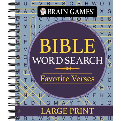 Boost your Bible knowledge with Brain Games Bible Word Search Favorite Verses Large Print. Includes 70 word search puzzles that draw words from passages of the King James version of the Bible. Verses are taken from both the Old and New Testament, including Psalms, Genesis, Luke, John, Matthew, and more.