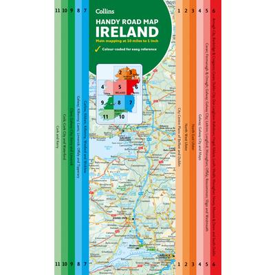 Easy-to-use route-planning map covering the whole of Ireland opens almost like a book. It has the convenience of an atlas with all the benefits of a fold-out map, and features clear, full-color road maps at 10 miles to 1 inch plus city center plans of Belfast and Dublin.