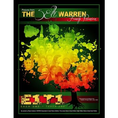 E1T1 is a picture book of "The 58th Warren Family Reunion." It was created to visually document and to stress the importance of FAMILY. In addition, Family is celebrated through Family-history, Family-Love and Inspiration: A family effort that tracks activities and events during the 4th of July weekend, 2014. By: Leonard Ly Shawn Anderson: WARREN Descendant of Jewel Warren (Mother) / Paul James Warren (Grand Father) / Elijah William Warren (Great Grand Father).