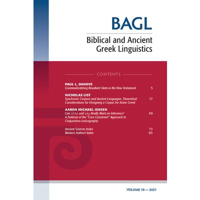 Biblical and Ancient Greek Linguistics (BAGL) is an international journal that exists to further the application of modern linguistics to the study of Ancient and Biblical Greek, with a particular focus on the analysis of texts, including but not restricted to the Greek New Testament. The journal is hosted by McMaster Divinity College and works in conjunction with its Centre for Biblical Linguistics, Translation and Exegesis, and the OpenText.org organization (www.opentext.org) in the sponsoring of conferences and symposia open to scholars and students working in Greek linguistics who are interested in contributing to advancing the discussion and methods of the field of research. BAGL is a refereed on-line and print journal dedicated to distributing the results of significant research in the area of linguistic theory and application to biblical and ancient Greek, and is open to all scholars, not just those connected to the Centre and the OpenText.org project.