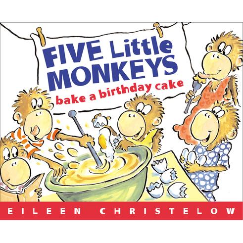 Five little monkeys wake up with the sun. Today is their mama's birthday and they are going to bake a cake. They'll have to measure the flour, mix in the right number of eggs, and get it into the oven in time for the birthday surprise-- all without waking up Mama! Eileen Christelow has created an original, high-energy romp, sure to delight any child who has tried to plan a surprise.