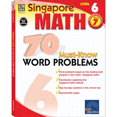 GRADE 7/AGES 12-13: This workbook features math practice and activities for first and second grade students based on the Singapore Math method; designed to help students master word problems.