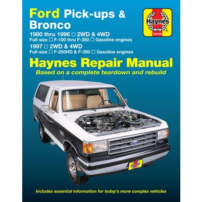 Each Haynes manual is written for the do-it-yourselfer and provides step-by-step instructions based on a complete disassembly of the vehicle. This hands-on experience provides the reader with specific and detailed instructions for performing everything from basic maintenance and troubleshooting to a complete engine overhaul. The models and model years covered in this title are as follows: Ford Bronco, 1980-1996