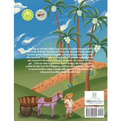 One day an old man called Jos矇 decides to collect coconuts to fill his larder at home. He sets out in his horse and cart to the nearest coconut grove, where he struggles to find just one, two, three, four, five coconuts. Eventually he does, putting five sacks each filled with one coconut in the back of his cart. However, the story is not over yet... Find out what happens on Jos矇's bumpy ride home! In this wonderful tale from the Philippines, children will experience beginning to record numbers using a simple tally system. Enjoy reading the story and recording numbers with Jos矇.