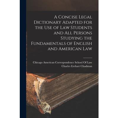 A Concise Legal Dictionary Adapted for the Use of Law Students and All Persons Studying the Fundamentals of English and American Law
