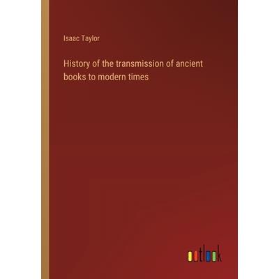 History of the transmission of ancient books to modern times. With The process of historical proof. This book, "History of the transmission of ancient books to modern times", by Isaac Taylor, is a replication of a book originally published before 1859. It has been restored by human beings, page by page, so that you may enjoy it in a form as close to the original as possible.