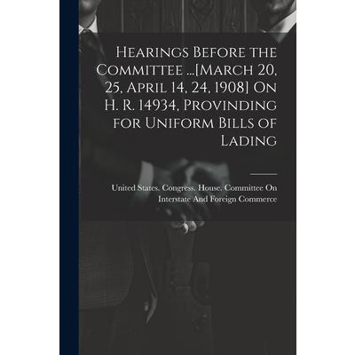 Hearings Before the Committee ...[March 20, 25, April 14, 24, 1908] On H. R. 14934, Provinding for Uniform Bills of Lading