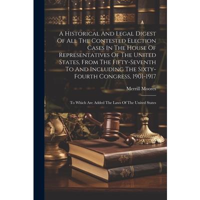 A Historical and Legal Digest of All the Contested Election Cases in the House of Representatives of the United States is a legal work by Merrill Moores. It provides historical and legal information on election cases in the House of Representatives from the 57th to the 64th Congress, including the laws relevant to these cases.