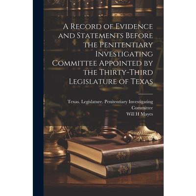 A Record of Evidence and Statements Before the Penitentiary Investigating Committee Appointed by the Thirty-third Legislature of Texas