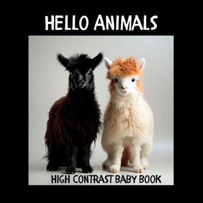 Introducing Hello Animals - High Contrast Baby Book, designed to captivate young children's attention with pictures of real animals.