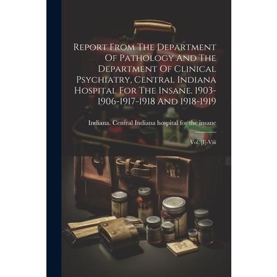 This report presents findings from the Department of Pathology and the Department of Clinical Psychiatry at the Central Indiana Hospital for the Insane during the years 1903-1906, 1917-1918, and 1918-1919.