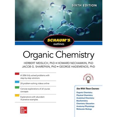 Trusted by more than 40 million students to help them succeed in the classroom and on exams, Schaum's Outlines cover course information in an easy-to-follow, topic-by-topic format, and provide access to detailed videos featuring course instructors explaining the most commonly tested concepts. Schaum's Outline of Organic Chemistry, Sixth Edition, includes: Access to a NEW Schaum's app and website1,806 fully-solved problems4 detailed problem-solving videos onlineExercises to help you test your mastery of organic chemistryCoverage appropriate for the following courses: Organic chemistry, physical chemistry, analytical chemistry, biochemistry, chemistry education, anatomy/physiology, and molecular biologyCoverage of all organic chemistry concepts, including structure and properties of organic compounds, bonding and molecular structure, stereochemistry, alkenes and alkyl halides, spectroscopy and structure, amines, phenolic compounds, and much more