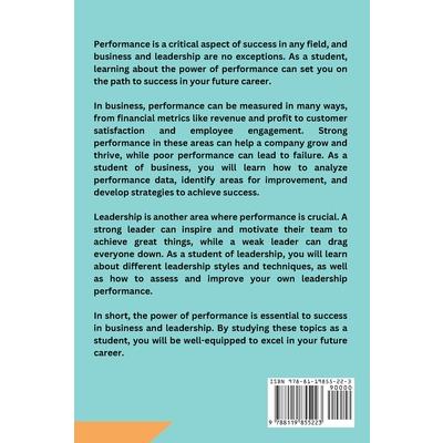 Understanding the Importance of Performance in Business and LeadershipPerformance is an integral aspect of success in both business and leadership. In any organization, whether it is a small startup or a multinational corporation, the ability to consistently deliver high-quality performance is crucial for achieving goals and driving growth. This subchapter will delve into the significance of performance in business and leadership, providing students with valuable insights into this vital area of study.First and foremost, performance in business directly impacts the bottom line. Companies that consistently outperform their competitors are more likely to attract investors, secure funding, and maintain a strong market position. Performance is not solely based on financial metrics, but also includes factors such as customer satisfaction, employee engagement, and operational efficiency. By comprehending the intricacies of performance, students studying business can gain a competitive edge in the dynamic corporate landscape.In the realm of leadership, performance is equally essential. Effective leaders inspire and motivate their teams to achieve outstanding results. They set clear goals, provide guidance, and foster a positive work environment that encourages peak performance. By understanding the importance of performance, students studying leadership can develop the skills needed to become impactful leaders who can drive their organizations towards success.Performance studies, as a niche field of study, provide students with a comprehensive understanding of the various factors that influence performance. This subchapter will explore topics such as performance metrics and measurement, performance evaluation, performance improvement strategies, and the role of motivation in enhancing performance. By gaining expertise in these areas, students specializing in performance studies can contribute significantly to organizations by helping them optimize their performance levels.Moreover, the subchapter will also emphasize the importance of continuous learning and development in enhancing performance. In today's rapidly evolving business environment, organizations must adapt and innovate to stay ahead. Students studying performance studies will be encouraged to explore emerging trends, industry best practices, and cutting-edge tools and techniques that can enhance performance in business and leadership.