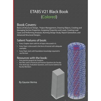 The ETABS V21 Black Book, the 5th edition of our book on ETABS, is written to help beginners learn the basics of ETABS structure modeling and analysis. The book is based on ETABS V21.1 software. The book follows a step-by-step methodology. This book explains the designing of structure, assigning various properties to structure, applying different load conditions, and performing analyses. The book covers almost all the information required by a learner to master basics of ETABS. Some of the salient features of this book are: