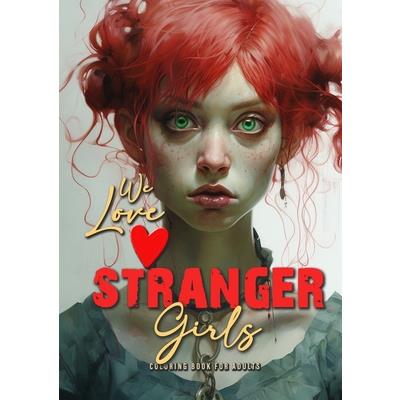 The coloring book includes52 pp.A4white backsides, not pushing throughlovely funny strange girlspunk/gothic girls with cool hairstylescreepy strange girlsand everything in between