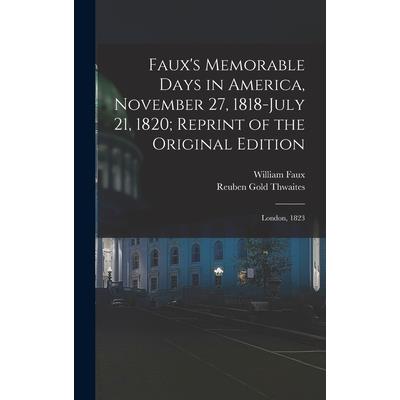 Faux's Memorable Days in America, November 27, 1818-July 21, 1820; Reprint of the Original Edition