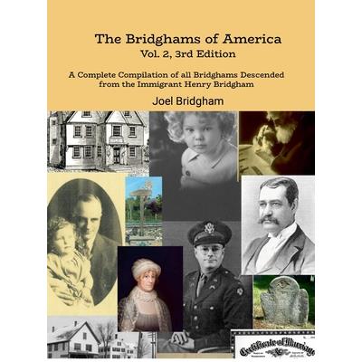 Volumes 1 and 2 contain the genealogies and biographies of all Bridghams descended from Henry Bridgham, who immigrated from England in 1641. It is a companion book to The Bridghams of America (Vol. 1, 3rd Edition). The books are divided by generations. Volume 2 covers generations ten through thirteen, which is roughly the mid-1800s through the present.