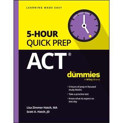 ACT 5-Hour Quick Prep For Dummies will calm your test-day jitters. Gain confidence with an overview of test content, what to expect on the day of the exam, and a short-form practice test with detailed explanations of the answers. This one-of-a-kind study guide is broken down into study blocks that you can tackle in 5 hours - all at once or over a few days. When you've finished practicing, you'll find a section full of tips and reminders that you can review the night before, so test day will be a breeze. You'll be on the fast track to ACT success with this book. Know what to expect on the ACT exam, including the content and test format Work through ACT example questions for every subject covered on the test Check your knowledge with a short sample test that includes detailed answers Improve your chances of getting into the college you want with a great score on the ACT