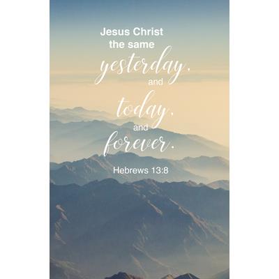 This Broadman Church Supplies General Worship Bulletin is adorned with a beautiful 4-color image, and is designed for use during a General Worship celebration service any time of the year. The featured verbiage is Hebrews 13:8 from the KJV translation of the Bible. All Broadman Church Supplies bulletins are sold in packages of 100 bulletins. A free downloadable template to help set up the layout of information to be printed on the bulletin is available at www.bhpublishinggroup.com/supplies-templates/.