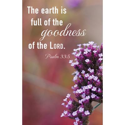 This Broadman Church Supplies General Worship Bulletin is adorned with a beautiful 4-color image, and is designed for use during a General Worship celebration service any time of the year. The featured verbiage is Psalm 33:5 from the KJV translation of the Bible. All Broadman Church Supplies bulletins are sold in packages of 100 bulletins. A free downloadable template to help set up the layout of information to be printed on the bulletin is available at www.bhpublishinggroup.com/supplies-templates/.