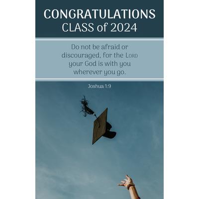 This Broadman Church Supplies Graduation Bulletin is adorned with a beautiful 4-color image, and is designed for use during a Graduation celebration service any time of the year. The featured verbiage is Joshua 1:9 from the KJV translation of the Bible. All Broadman Church Supplies bulletins are sold in packages of 100 bulletins. A free downloadable template to help set up the layout of information to be printed on the bulletin is available at www.bhpublishinggroup.com/supplies-templates/.