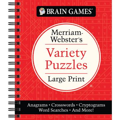 Brain Games Merriam-Webster's(R) Variety Puzzles Large Print features vocabulary from America's best-selling Merriam-Webster's Collegiate(R) Dictionary to put your language skills to the test--all while giving your eyes the rest they deserve! Solve 140 acrostics, anagrams, crosswords, cryptograms, word ladders, and word searches in a variety of themes and difficulties. Topics include flowers, gemstones, baked goods, music, sports, and world geography. Answer key found in the back of the book. 160 pages, spiral bound.