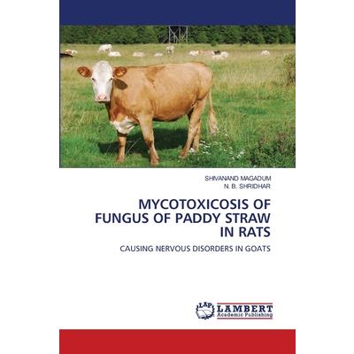 The present study was undertaken to evaluate the toxicity of fungal contaminated paddy straw in rats causing nervous disorders in goats. Repeated dose 28-day oral toxicity study was conducted in 16 groups consisting of 6 rats of either sex. The fungal culture filtrates of the three isolated fungi C. cladosporoides, P. chartarum and A. niger was administered to induce the toxicity in rats in the dose range of 0.5, 1, 2 ml/ 100 g. Two groups consisting of 6 rats were administered with mixed proportion of all the three isolated fungi C. cladosporoides, P. chartarum and A. niger. During the study period, animals were observed for clinical signs of toxicity. Body weight was measured and blood samples were collected on day 0, 14 and 28 of the study. Biochemical parameters like ALT, AST, BUN, creatinine, and haematological parameters like TLC, TEC, PCV and Hb were analysed. The fungal infected wheat material was analyzed for the presence mycotoxins by LC-MS/MS method.