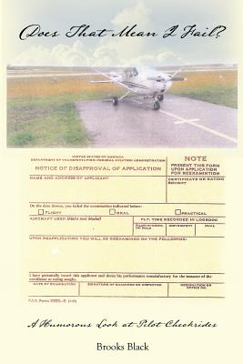 Does That Mean I Fail?: A Humorous Look at Pilot Checkrides by Brooks Black As collection of humorous first-hand accounts of pilot check-rides, Does That Mean I Fail? is geared towards both pilots and non-pilots. After years of Designated Pilot Examiners (DPEs) thinking and saying, "Nobody would believe this," and, "Somebody should write a book," Brooks Black finally has. Does That Mean I Fail? is the result of nearly 100 check-rides and the author's own personal experiences. Combined, they allow for new and unique insight into the exciting world behind flight. Brook Black's writing reads with a good dose of humor and information. It is at once highly detailed and exciting. Does That Mean I Fail? is sure to both entertain and enlighten. About the Author Born and raised in Toledo, Ohio in 1943, Brooks Black went on to earn a Bachelor of Science degree in Chemical Engineering from the University of Toledo. He began flying in 1967 and is a pilot, flight and ground instructor, aircraft mechanic and Designated Pilot Examiner. He also received certification as an Aircraft Accident Investigator from the University of Southern California. The stories from Does That Mean I Fail? result from his DPE career. He is also a USCG captain, certified to operate up to a 100-ton vessel and has roughly 17,000 flight hours. He is married with one daughter. He and his wife, Lena, enjoy cruise ship travel, and they own a SeaRay 34 Express. Brooks Black also enjoys model railroads and once served as president of the Palm Beach Model Railroad Club. His family also includes the love of four Maltese, two of which were bred and raised in their home.