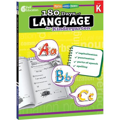 Help Improve Grammar Skills with Fun, Daily Practice for Kindergarteners! 180 Days(TM) of Language for Kindergarten Workbook Features: A full page of easy-to-follow practice for every day of the school year Age-appropriate activities that build grammar skills and boost confidence Diagnostic tools to record and assess progress and learning needs along the way Engaging Kindergarten Learning Activities: Students learn best with short, consistent practice. This kindergarten workbook offers standards-based activities for every day of the school year to help develop early grammar skills. Perfect for kindergarten students, each page supports steady progress without overwhelming learners. Daily Grammar Practice That's Fun and Effective: Featuring one practice page per day, students build confidence and grammar skills as they practice punctuation, capitalization, parts of speech, spelling patterns, and more through a variety of exercises that engage learners. Perfect for Homeschool and Classroom Learning: Parents love that this teacher-approved language arts workbook makes at-home learning easy, while teachers trust it for classroom and small-group use. Ideal for homeschool, extra practice, or children who need a little more support, this workbook fits seamlessly into any learning routine. Track and Support Progress With Ease: Helpful overview pages explain what children are learning and offer tips to support them throughout their learning journey. The included answer key and other diagnostic tools make it easy to track and assess progress and learning needs along the way. About Our Best-Selling Workbook Series: The 180 Days(TM) of Practice series by Shell Education provides standards-based, daily activities that engage students in learning language, reading, writing, spelling, science, social studies, social-emotional learning, mathematics, and more! The easy-to-use workbooks are aligned with college and career readiness and state standards--perfect for both classroom at-home learning.