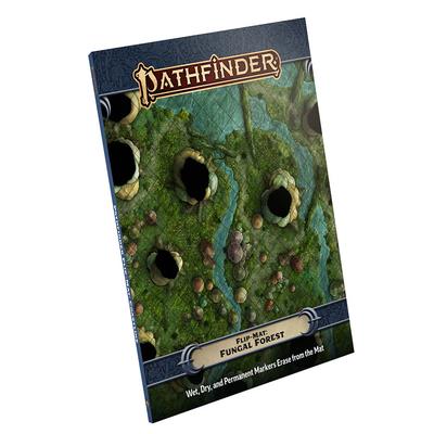 Beneath the heavy forest canopy another kind of forest thrives. This shadow-dark haven for ferns, moss, and large fungus provides a perfect unsettling location for enemies to spring an attack. One side shows trees studded with shelf fungus and other growths, while the second side depicts similar features in a swamp. Danger is just a step away, so don't waste time drawing your own map when Pathfinder Flip-Mat: Fungal Forest has you covered! Pathfinder Flip-Mat: Fungal Forest measures 24" x 30" unfolded, and 8" x 10" folded. A Flip-Mat's coated surface can handle any dry erase, wet erase, or even permanent marker. Usable by experienced GMs and novices alike, Pathfinder Flip-Mats fit perfectly into any Game Master's arsenal!