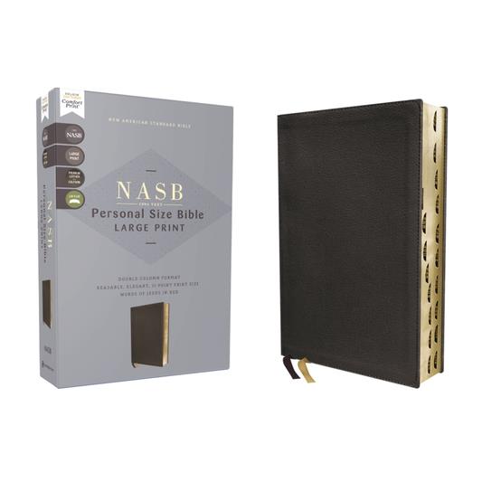 Nasb, Personal Size Bible, Large Print, Genuine Leather, Calfskin, Black, Red Letter, 1995 Text, Thumb Indexed, Comfort Print